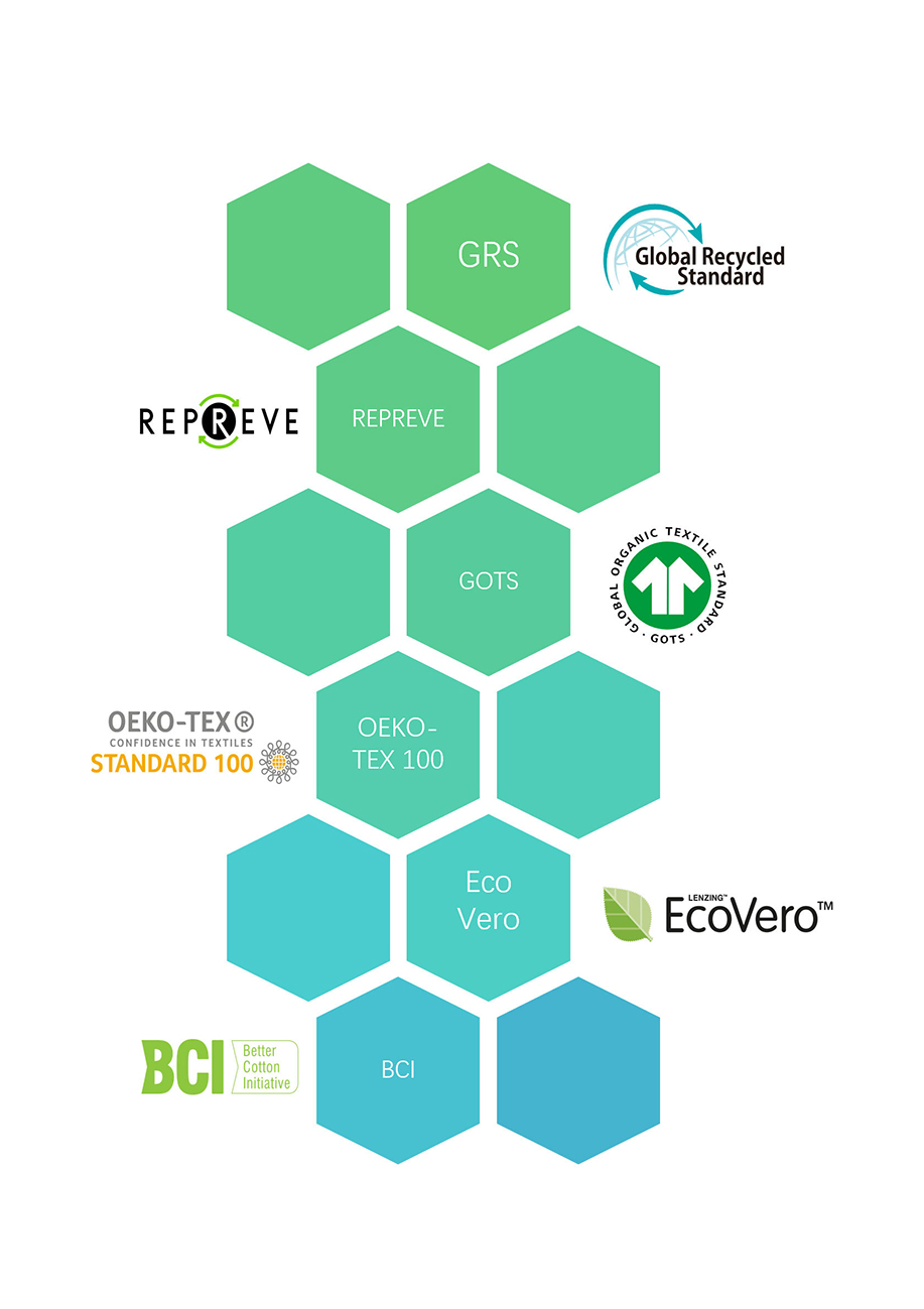 Our fabrics meet the standards of globally recognized certifications, including GRS, GOTS, OEKO-TEX 100, Physical Traceable BCI, and SRCCS, providing clients with trustworthy and transparent guarantees.